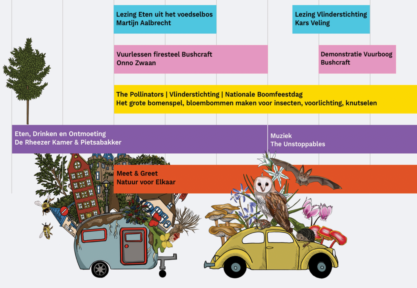 Op zaterdag 28 januari arriveert De Groene Karavaan op natuurcamping De Klashorst in Diffelen voor het Vechtdal Boomfestival. De dag bestaat uit een gevarieerd programma voor jong en oud: muziek, workshops, lezingen, lekker eten en drinken en vooral: samen bomen planten! The Pollinators zijn mede-organisator en dragen zorg voor een inspirerend programma. Als je ze kent en wel eens op een Tree Fest bent geweest, dan weet je dat deze dag echt de moeite waard is!